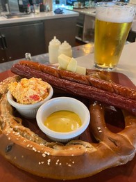 Big Warm Bavarian Pretzel$12.00big soft crunchy Bavarian pretzel with sides of mustard + hand crafted pimento cheese.